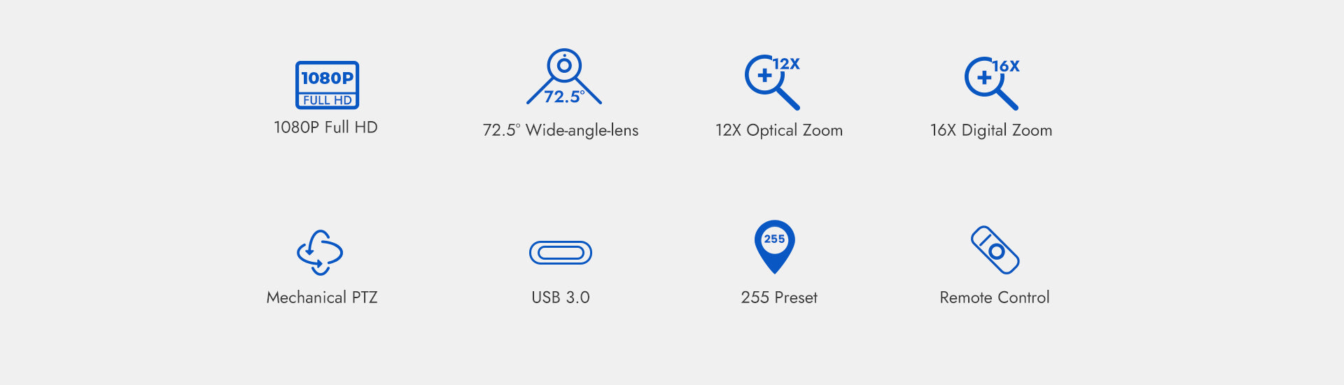 The exclusively customized 72.5° high-quality ultra-wide-angle lens, support 12x optical zoom and 16x digital zoom.