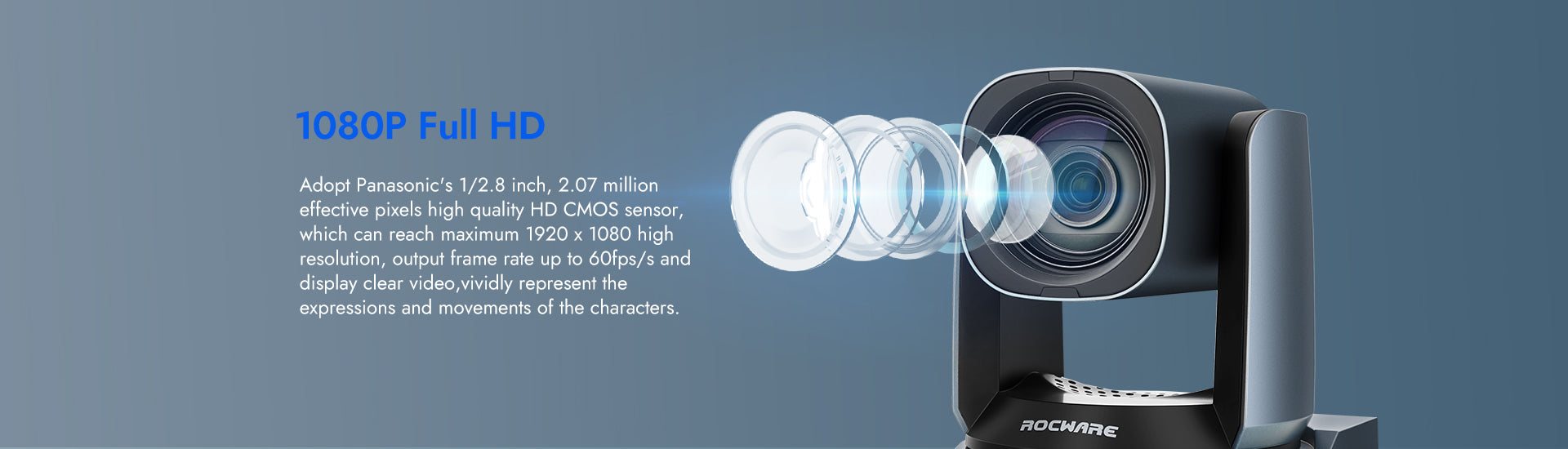 Adopt Panasonic's 1/2.8 inch, 2.07 million effective pixels high quality HD CMOS sensor, which can reach maximum 1920 x 1080 high resolution, output frame rate up to 60fps and display clear video,vividly represent the expressions and movements of the characters.